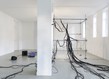 L’échafaudage d’acier tient lieu d’utérus ou de prison, on ne sait plus. Une cage rationnelle, d’où la matière déborde comme une infection. On reconnaît là un vieux réflexe architectural : contenir le vivant, l’empêcher de se répandre. Mais cette fois, la ville a perdu. Le réseau dégorge de la structure, comme si l’organisme refusait d’être soigné, préférant suinter à travers ses propres sutures. Chaque câble est un muscle électrique, chaque jonction une cicatrice, chaque soudure un compromis entre soin et cruauté. Ce qui devait construire s’effrite ; ce qui devait soutenir devient milieu. C’est une insurrection douce, huilée, sans slogan : la matière elle-même conteste la géométrie qui la retient.