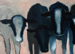 Une toile représentant une cavalcade à l’horizon, prend d’abord les teintes de l’aube avant de s’assombrir et d’atteindre à la tombée de la nuit. D’une couche à l’autre, c’est un travail des contraires qui amène l’artiste à sans cesse préciser son attention. La touche haptique rend palpable d’une toile à l’autre la neige, la paille, un certain climat.